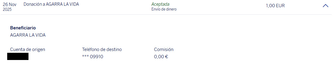 Haz una donación al proyecto Agarra la Vida mediante transferencia bancaria a la siguiente cuenta corriente.